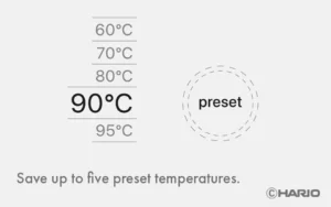 Gem op til fem af dine foretrukne temperaturindstillinger, så du hurtigt kan starte brygningen med dine præferencer.
